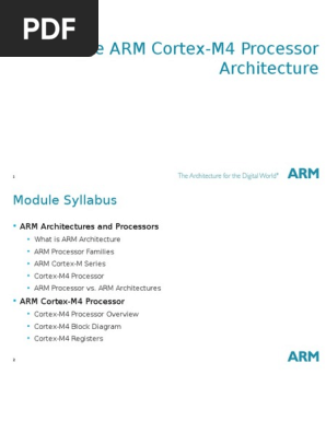 Sep 16, In depth guide on ARM CortexM4 Architecture microcontrollers, comparison of different CortexM family microcontrollers Sep 16, In depth guide on ARM CortexM4 Architecture microcontrollers, comparison of different CortexM family microcontrollers Today Explore When autocomplete results are available use up and down arrows to review andThe CortexM4 core is also able to run from external DDR memory (through the MMDC) and QSPI Furthermore, the CortexM4 uses a Modified Harvard Architecture, which has two independent buses and caches for Code (Code Bus) and Data (System Bus) The memory addressing is still unified, but accesses are split between the buses using addresses asCortexM4 processor, the programmer's model, instruction set, registers, memory map,floating point, multimedia, trace and debug support Product revision status The rmpn identifier indicates the revision status of the product described in this book, for example, r1p2, where rm Identifies the major revision of the product, for example, r1 pn Identifies the minor revision or modification